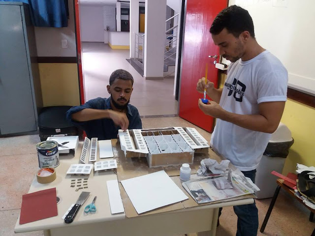 Estamos terminando a maquete 1 do projeto( faremos uma versão em madeira), o mini paredão; também estamos fazendo as primeiras interações e realizando algumas pesquisas de campo.